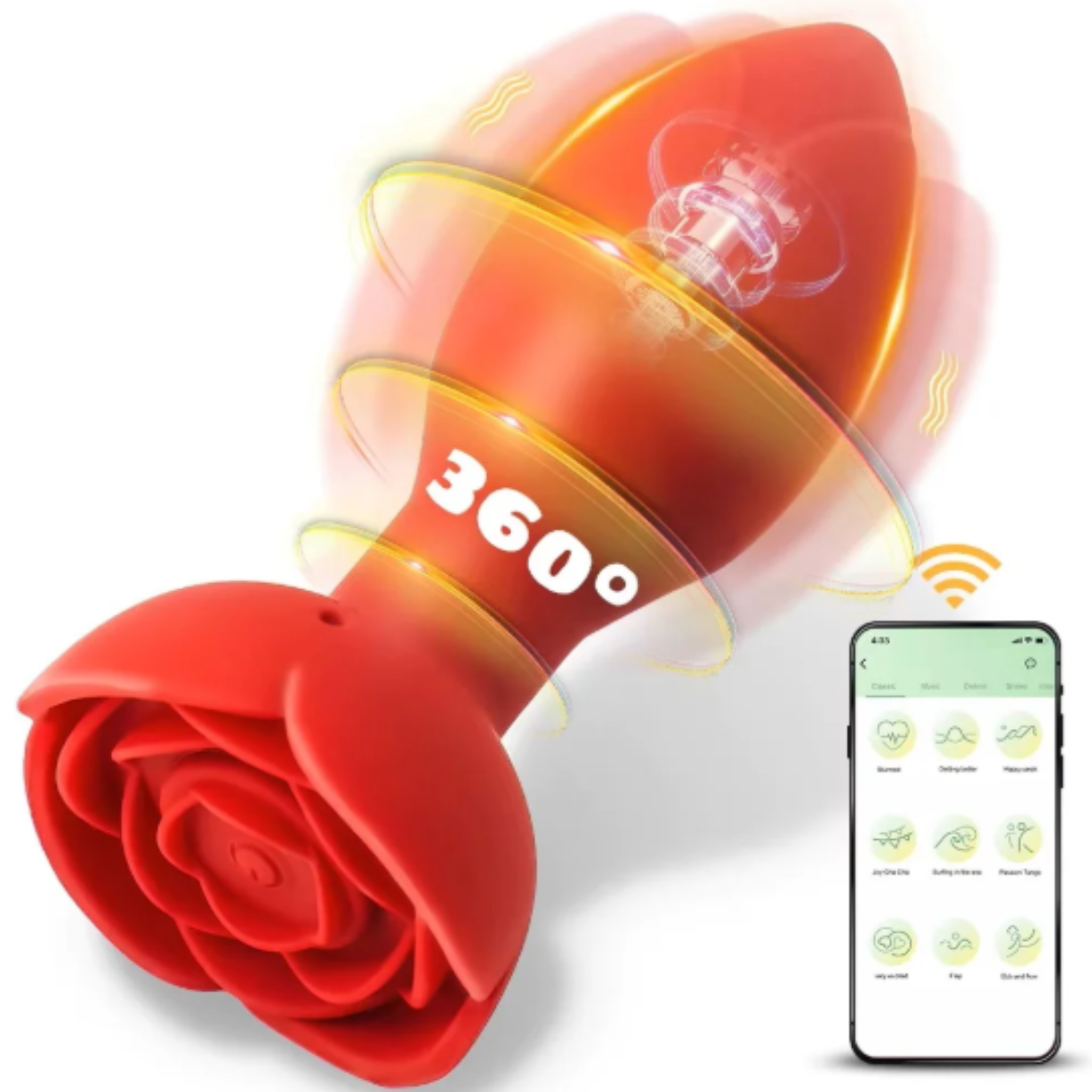 Características do Plug Anal Rosa Giratória com Vibração com Controle Via Aplicativo: